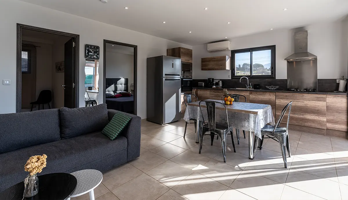Magnifique villa récente sur les hauteurs d’Afa, proche d’Ajaccio et de l’aéroport, avec deux T3 indépendants.