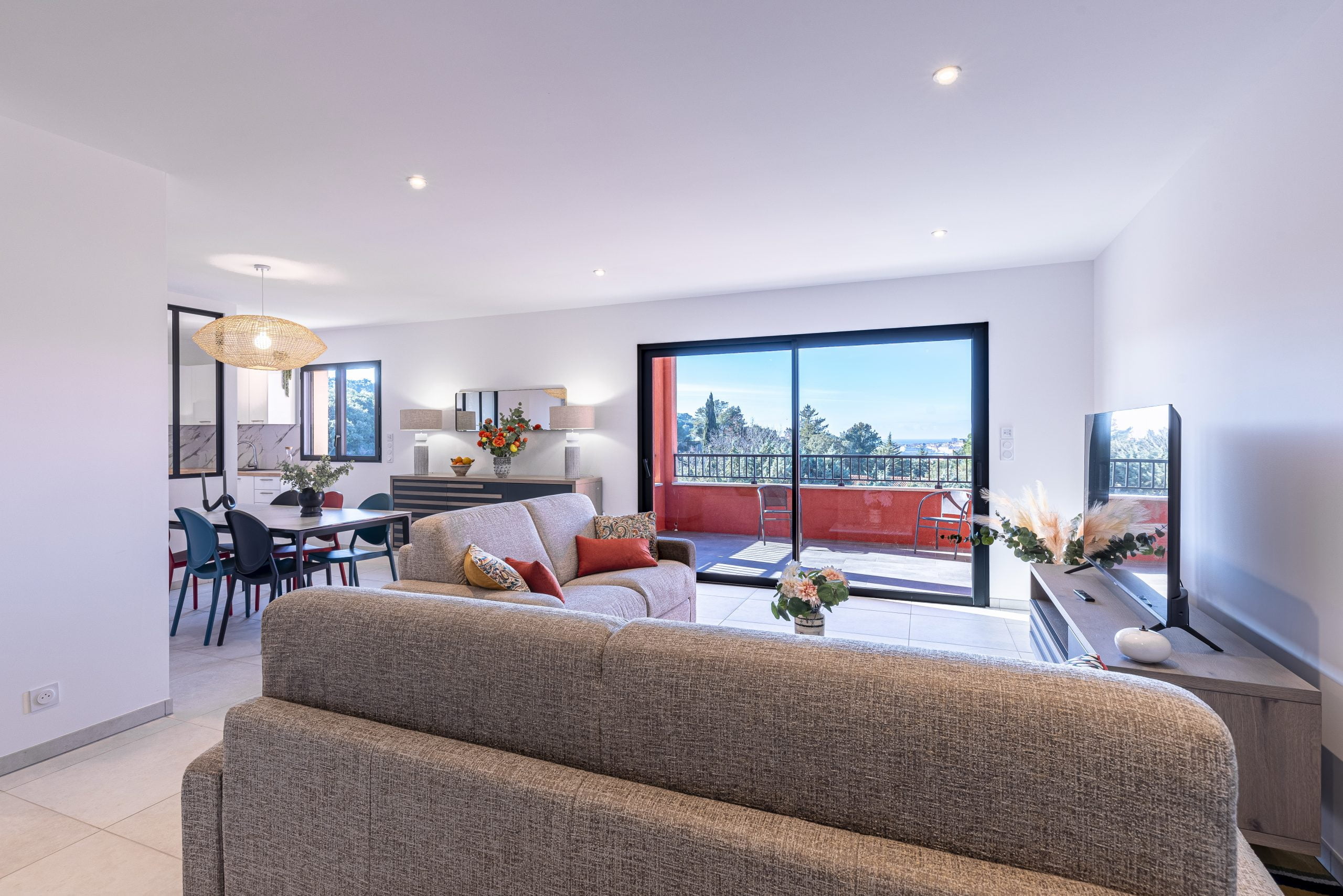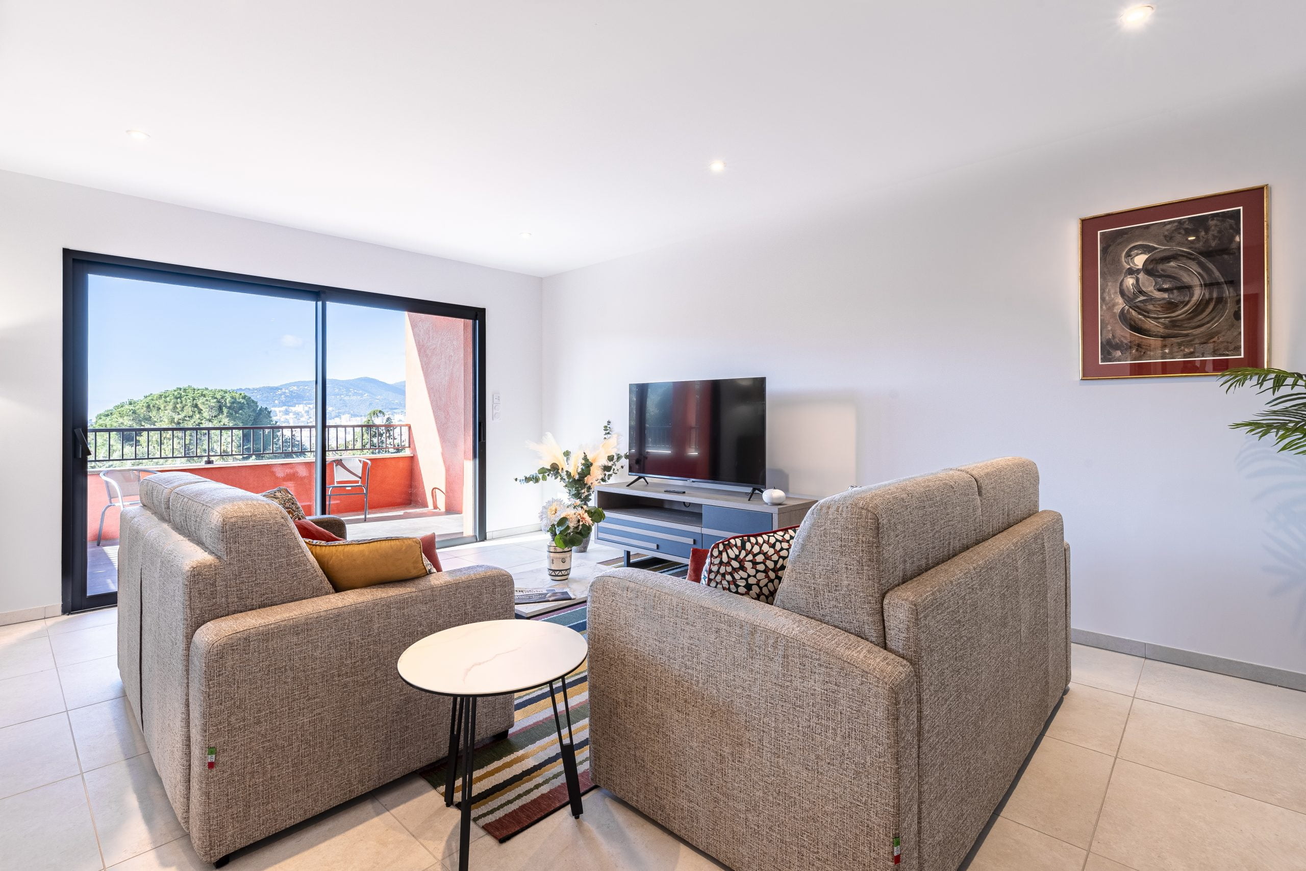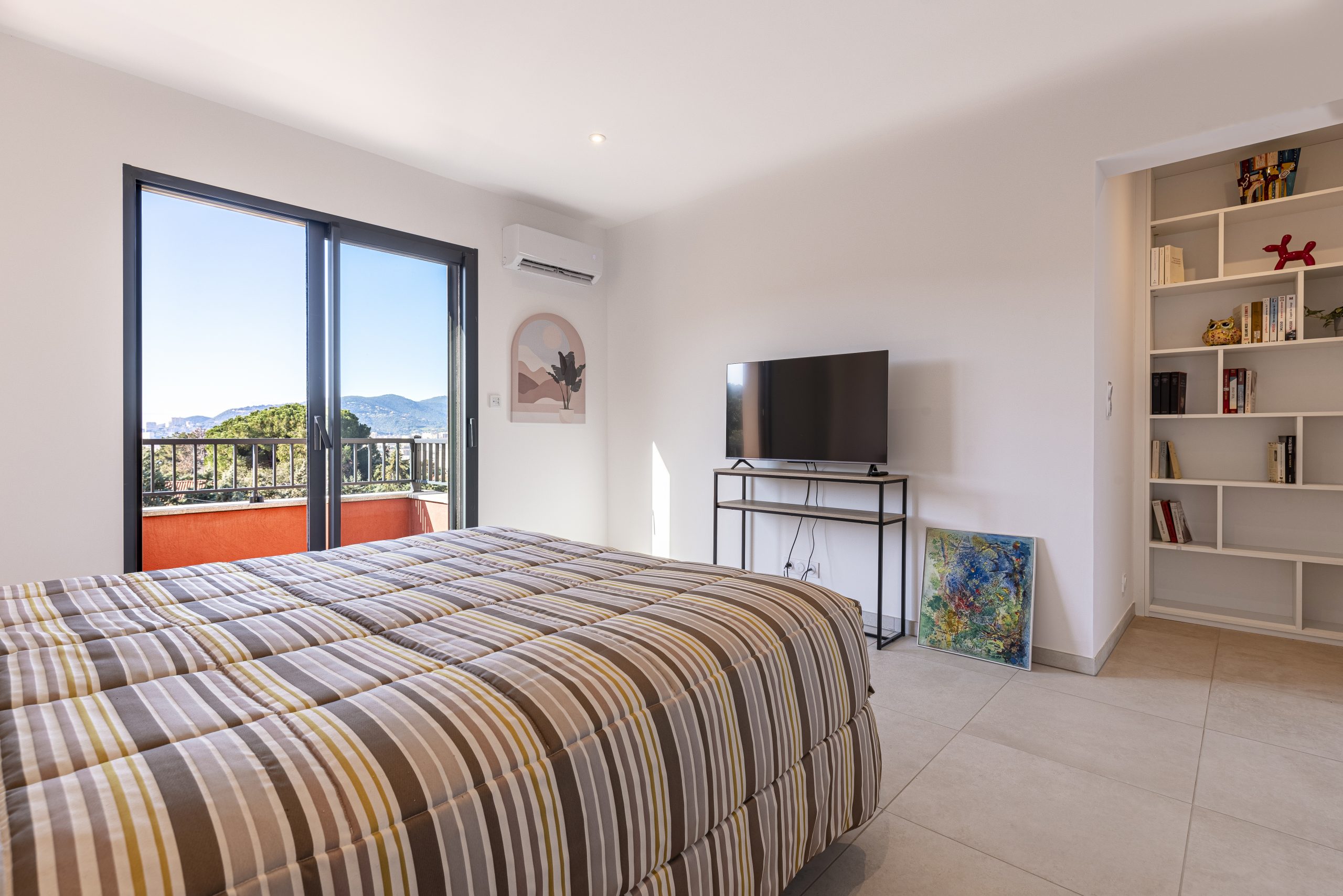 Il se compose d’une suite parentale avec salle de bain , d’une deuxième chambre double avec balcon et vue dégagée, d’une seconde salle de bain avec douche et toilettes, de toilettes indépendantes , d’un long couloir avec de nombreux rangements, d’une cuisine ouverte et très bien équipée, et d’un spacieux salon donnant sur une terrasse de 15m2 avec vue dégagée sur la mer et le ville . Nous adorons la grande bibliothèque mise à disposition des voyageurs.